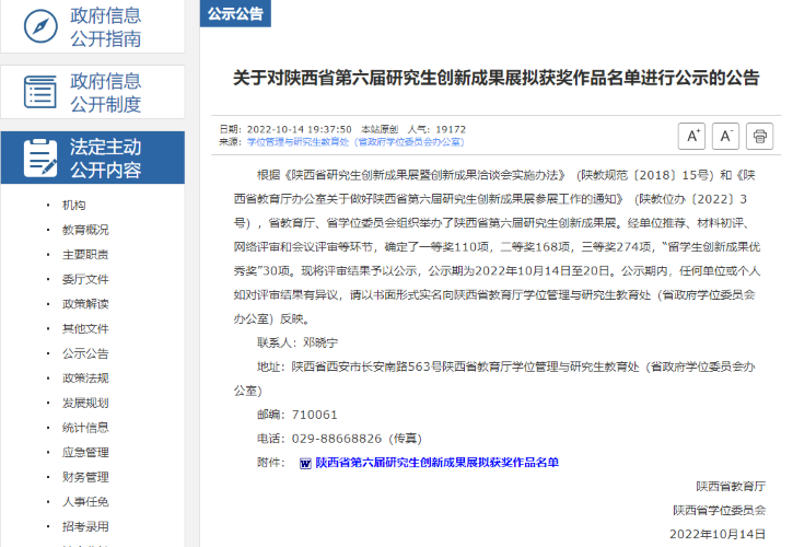 我院研究生喜获陕西省第六届研究生创新成果展一等奖