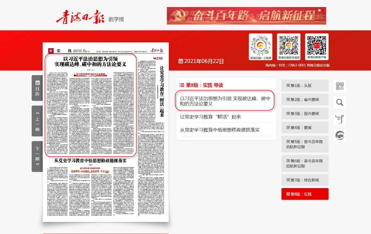 yl7703永利集团王涛助理教授在《青海日报》发表理论文章