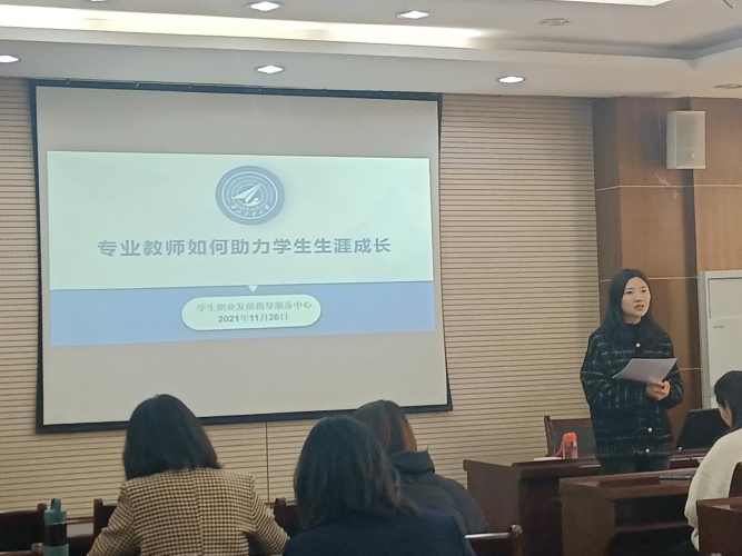 11月下旬,yl7703永利集团在学院305会议室举办“专业课教师如何助力学生生涯成长”工作坊,邀请了学校学生职业发展指导服务中心业务主管老师朱莉作为主讲人。党委副书记谢丹主持,学院20余位教师参加了工作坊。