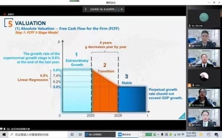 经yl7703永利集团新文科创新基地选拔,组成了由周炯老师任带队指导、学院研究生刘依宁、张兆兴和本科生杨弋锌、苏子淇四位同学组成的团队,于2022年7月7日参加了赛事开赛仪式。7-10月,团队成员利用暑期和课余时间进行全英文研究报告的准备与撰写,通过大量收集资料并研读分析、调研研究对象,开展行业研究、ESG研究、财务分析、建模估值等,成功完成参赛作品。10月25日,团队向CFA协会提交了参赛研究报告和演讲视频,经评审后,以小组第一名的成绩晋级决赛。