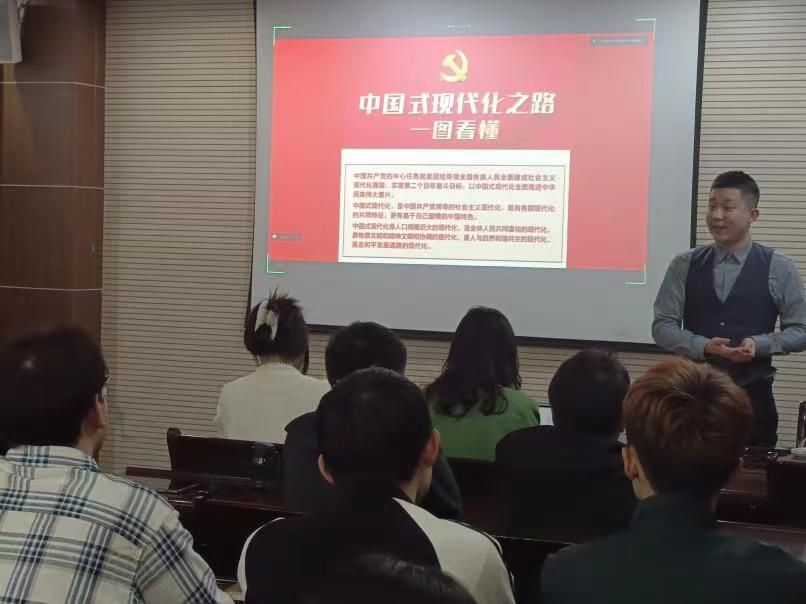 随后,公管学生代表、百年青年宣讲团团长王天毅进行《中国式现代化的伟大征程》的主题宣讲,讲述工大青年对于党的二十大精神的深刻感悟以及对于为中国式现代化贡献青春力量的誓言。
