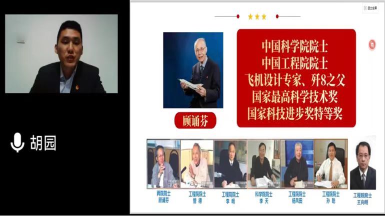 接下来,航空工业沈阳所的胡园进行了宣讲,首先播放了航空工业沈阳所宣传片,让同学们对航空工业沈阳所的辉煌成就有了更清晰的认识,同时宣讲了航空工业集团第三次团代会精神,最后重点介绍了“团结拼搏、严谨求实、艰苦创新、献身航空”的顾诵芬精神。