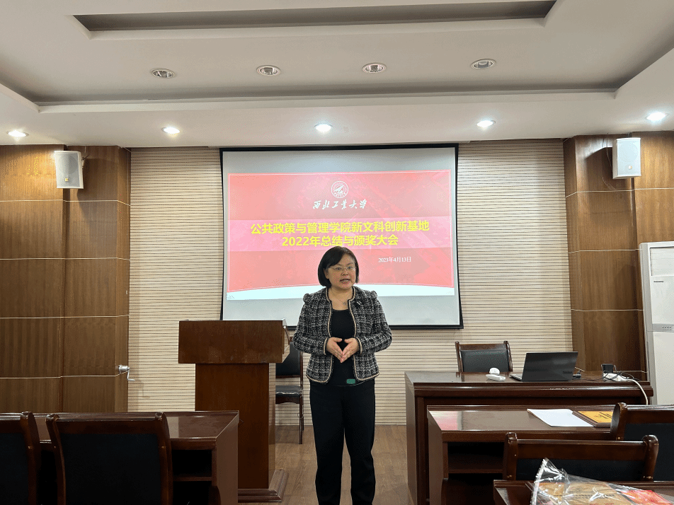 首先,李娜副院长对2022年新文科创新基地工作做出总结,她指出在基地成立的开局之年,基地组织参加了5个学科竞赛,通过层层选拔,参与的学生100余人次,获得国家级学科竞赛特等奖2项、一等奖6项、二等奖6项,优秀院校组织奖2项,优秀指导老师5人等优秀成绩,基地以文科+其他专业为指导,拓展新文科的知识体系,开拓新文科的实践实习领域,不断强化学生创新知识能力与实践的融合。