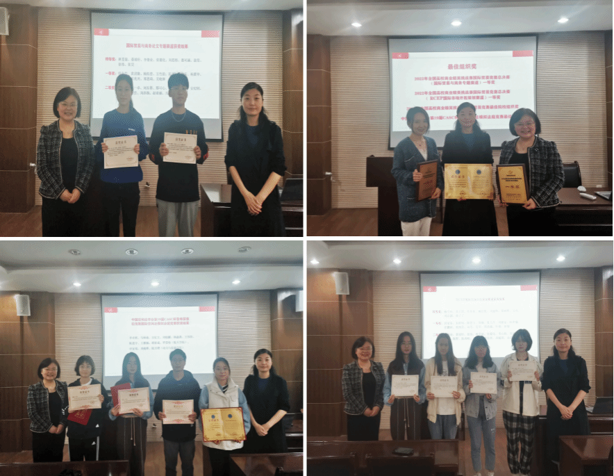 在颁奖环节中,依次为全国高校商业精英挑战赛国际贸易竞赛总决赛、中国空间法协会第十九届国际空间法模拟法庭竞赛、最佳院校组织奖、最佳辅导教师奖获得者颁发获奖证书。