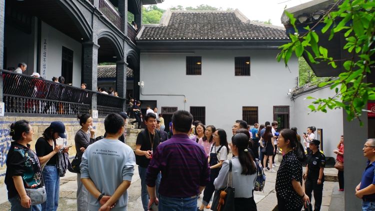 一行人首先参观了渣滓洞、白公馆。这两处都曾经是国民党特务机关关押和迫害革命者的秘密监狱。1949年11月27日,就在新中国成立后、重庆解放前夕,国民党特务在这里残忍杀害了300多名革命者。大家随着肃穆的人群观看了冰冷的刑具、狭窄的牢房,想象革命前辈遭受的苦难,感到心情沉闷、灰暗。我们同时也看到,即使在如此险恶、困苦的条件下,革命先烈们仍然坚定信念、一心向党、追求自由、斗争不屈。虽然人身被限制,先烈们仍然坚持以笔作枪,用诗文同强暴、黑暗、邪恶进行艰苦卓绝的斗争,亲手绣成五星红旗表达对新中国的渴望和祝福。革命先烈们所展现出的伟大意志力,放射出不灭的光芒,给大家以极大的精神震撼和感染。