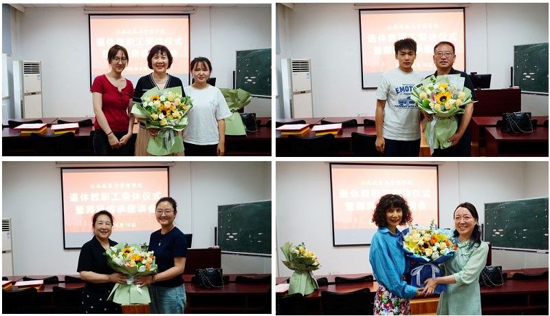 随后,刘晨光逐一为荣休老师们颁发了纪念品,学生和教师代表向荣休老师们献上了鲜花,表达学院美好的祝愿。