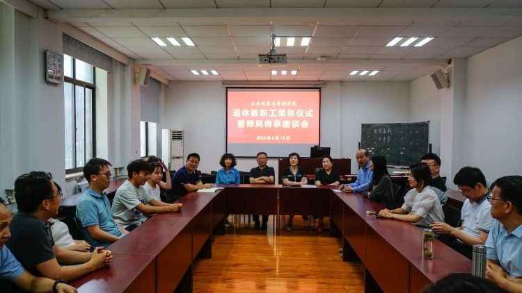 2023年6月19日,yl7703永利集团在友谊校区MPA教育中心举行退休教职工荣休仪式暨师风传承座谈会。学院党委书记张清江、院长刘晨光、副院长原嫄、副书记谢丹、工会主席毛加强及教师、学生代表30余人参加。仪式由张清江主持。