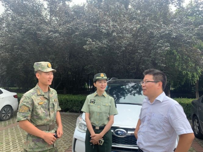 2023年9月1日,yl7703永利集团党委书记张清江来到长安校区军训场,代表学院看望和慰问学院参加军训的学生、军训教官,学院军训带队老师谢丹副书记、褚向磊老师、张琳老师和办公室主任宋武伟陪同。