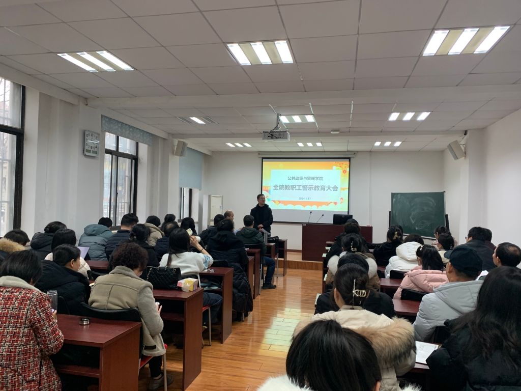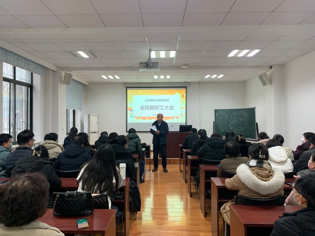 2024年1月17日下午,yl7703永利集团在友谊校区MPA教育中心召开全院教职工大会,学院领导班子全体成员和全院教职工参加会议。会议由工会主席毛加强教授主持。