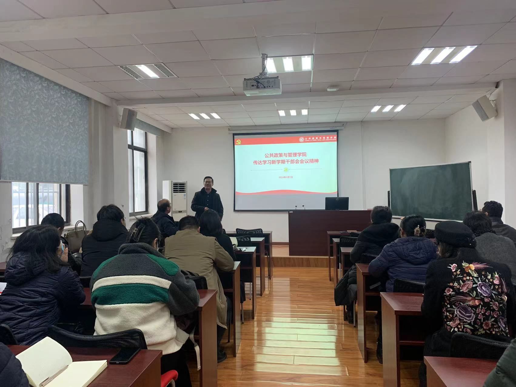 学院党委书记管兴华传达学校寒假务虚会、新学期干部会等会议精神,详细解读了宋保维校长《统筹推进科技创新与人才队伍建设 加快建设中国特色世界一流大学》的主题报告和李言荣书记讲话精神,以及学校2024年重点工作任务。他强调了报告提出的学校“127”近期发展目标、三个“千方百计”、三个“永远”、“只有做好了才算做了”的新理念、新标准,重点介绍了学校新阶段对文科发展的目标和要求,号召全院上下锚定“127”目标,凝心聚力推动学院高质量内涵式发展,助力学校实现“天下工大、世界三航”的远景目标。