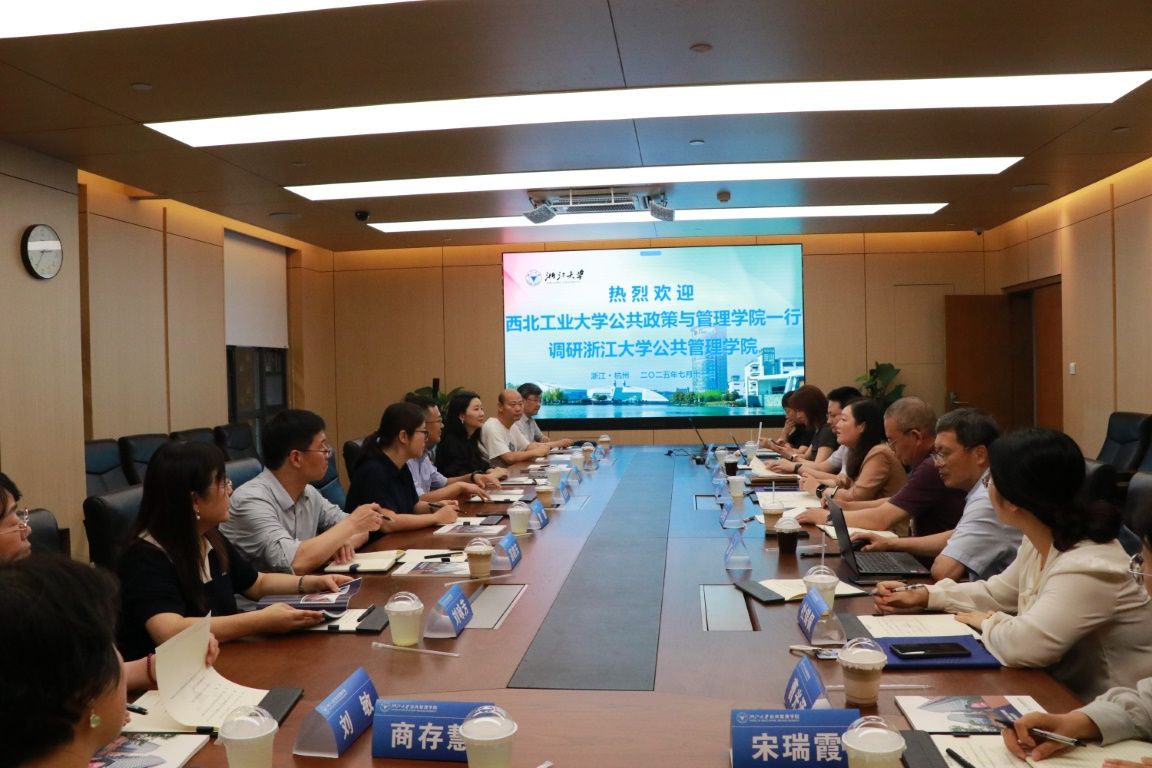7月11日下午,学院教师首站走进浙江大学公共管理学院。双方围绕人才培养、学科建设、高层次人才引育等核心议题展开深度对话。浙大公管学院党委副书记姚晨、副院长谭荣等分享了人才引育、人才培养的实施经验,重点介绍通过优厚待遇引才、平台项目育才的创新机制。学院通过优化学科布局、强化交叉融合提升学科辨识度,针对专业招生差异采取多元化招生策略,并建立学生深造就业全周期导向机制。学院通过政策激励推动教材建设与教学成果转化,形成“教学-科研-实践”良性互动格局。座谈中,双方还就青年教师发展支持、科研团队建设、拔尖创新人才培养等共性问题深入探讨。管兴华书记表示,浙大公管学院在人才引育、学科建设中的创新实践为学院发展提供了重要启示,期待未来进一步加强交流沟通。会后,两院互赠纪念品,象征合作友谊的文创作品传递着深化协作的美好愿景。