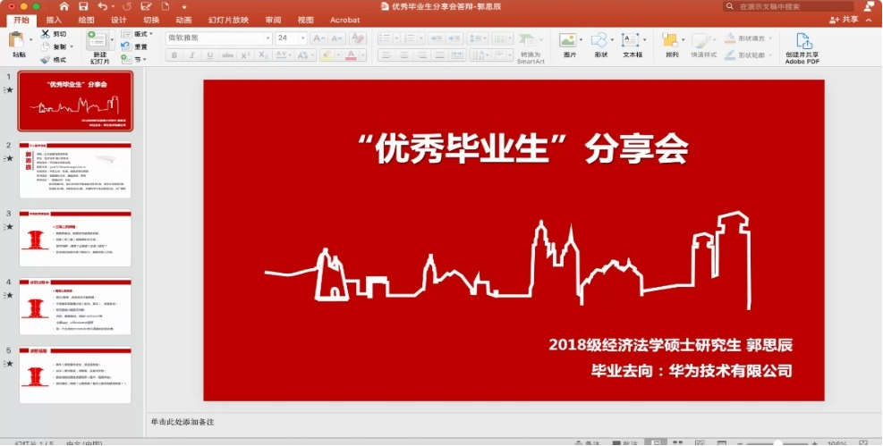 本次分享会邀请了学院在申请博士、求职就业、考取公务员、科研创新等方面表现突出的5位不同专业的优秀毕业生代表,通过回顾成长历程,分享有关升学读博、求职就业的宝贵经验。