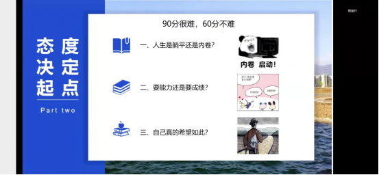 钱玺竹同学结合自身经历向学弟学妹们抛出了三连问:大学期间是选择躺平还是内卷?是要能力还是成绩?真的希望自己如此吗?