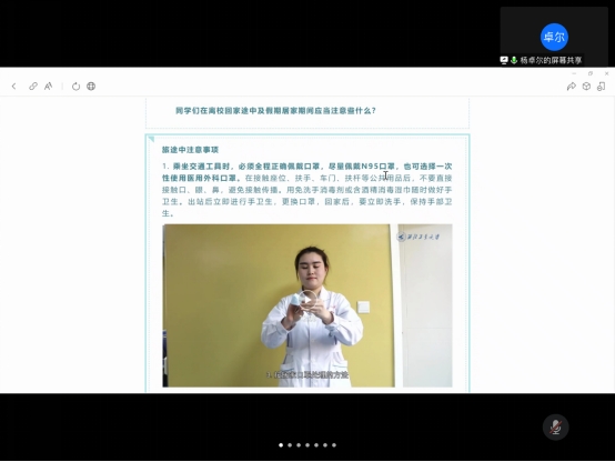 最后,杨卓尔传达了2022年离校返乡文件的须知内容,提醒学生返乡后做好安全健康监测,完成离校报告。同时留意学校官方的信息,谨防不法分子利用学生返乡心切的特点乘机实施诈骗。