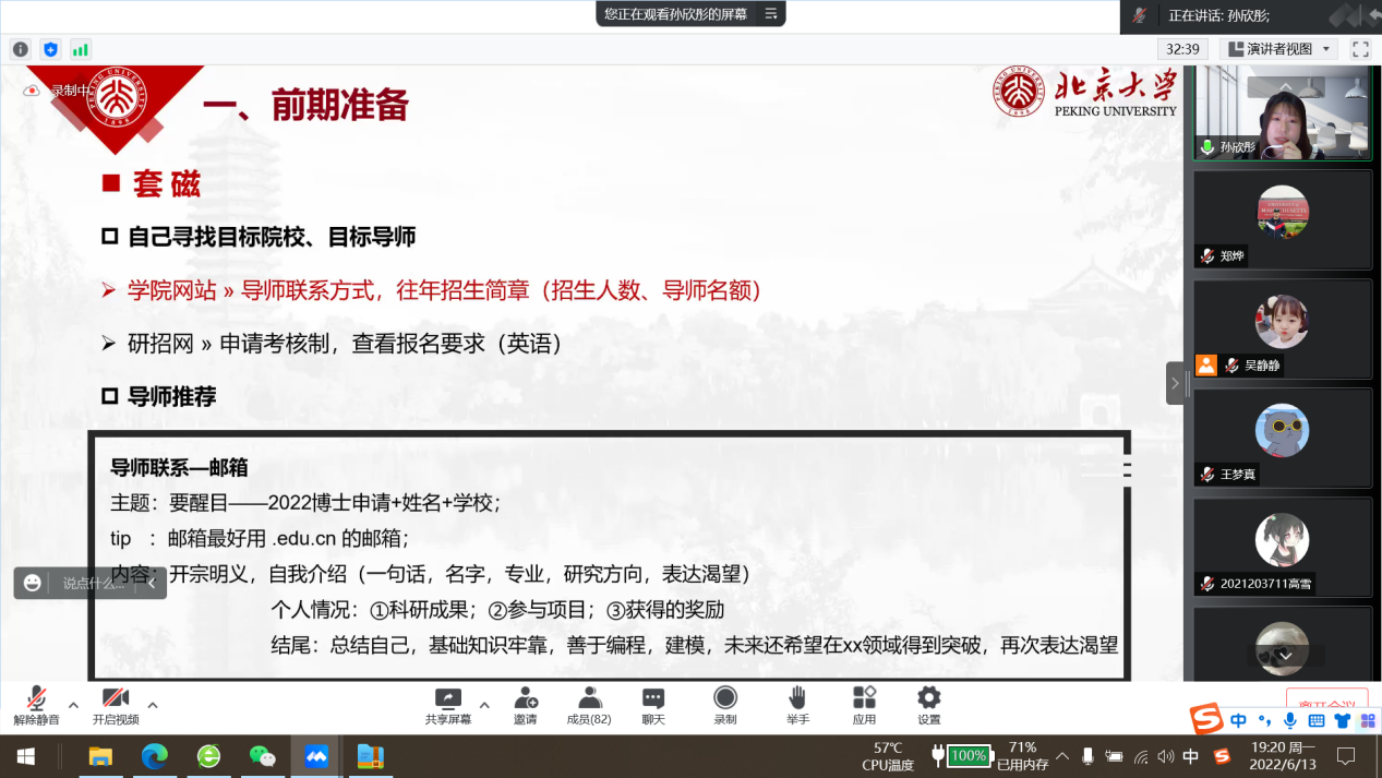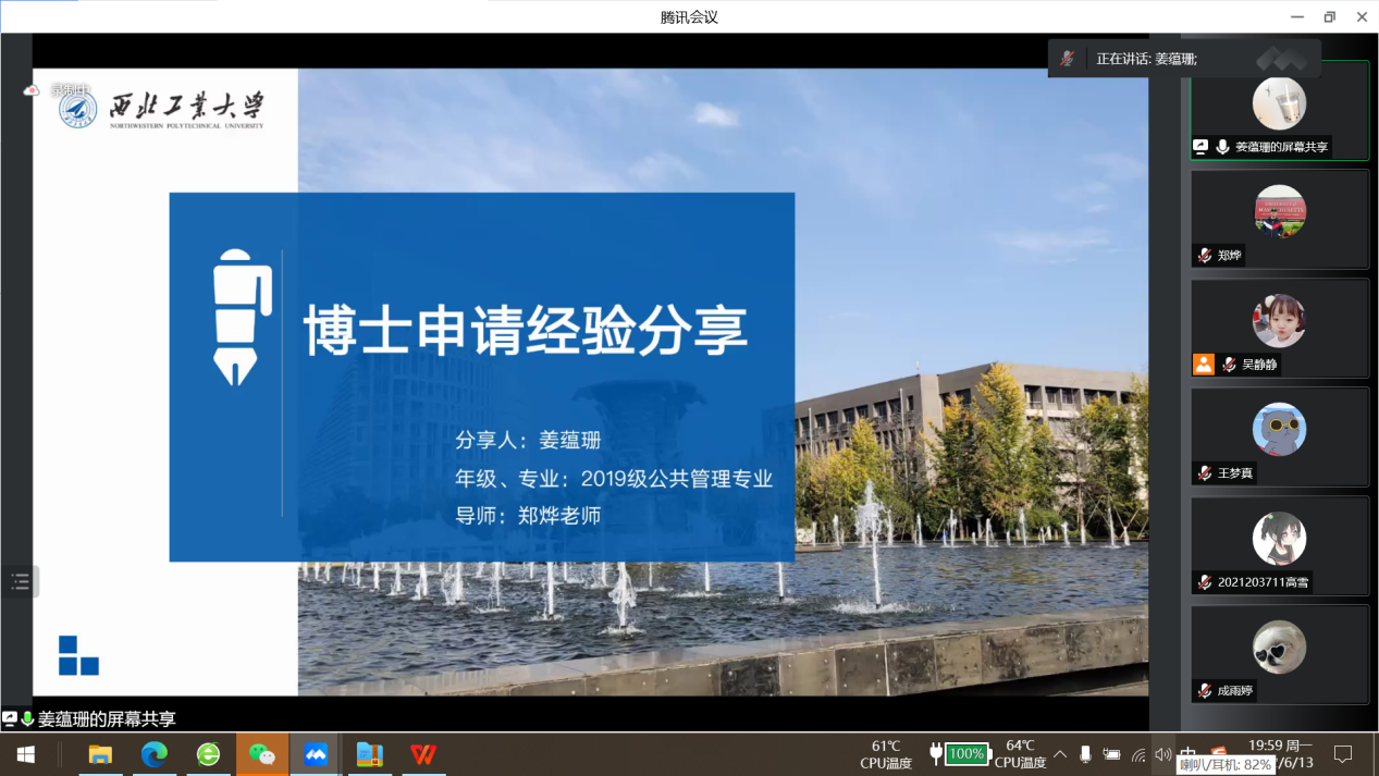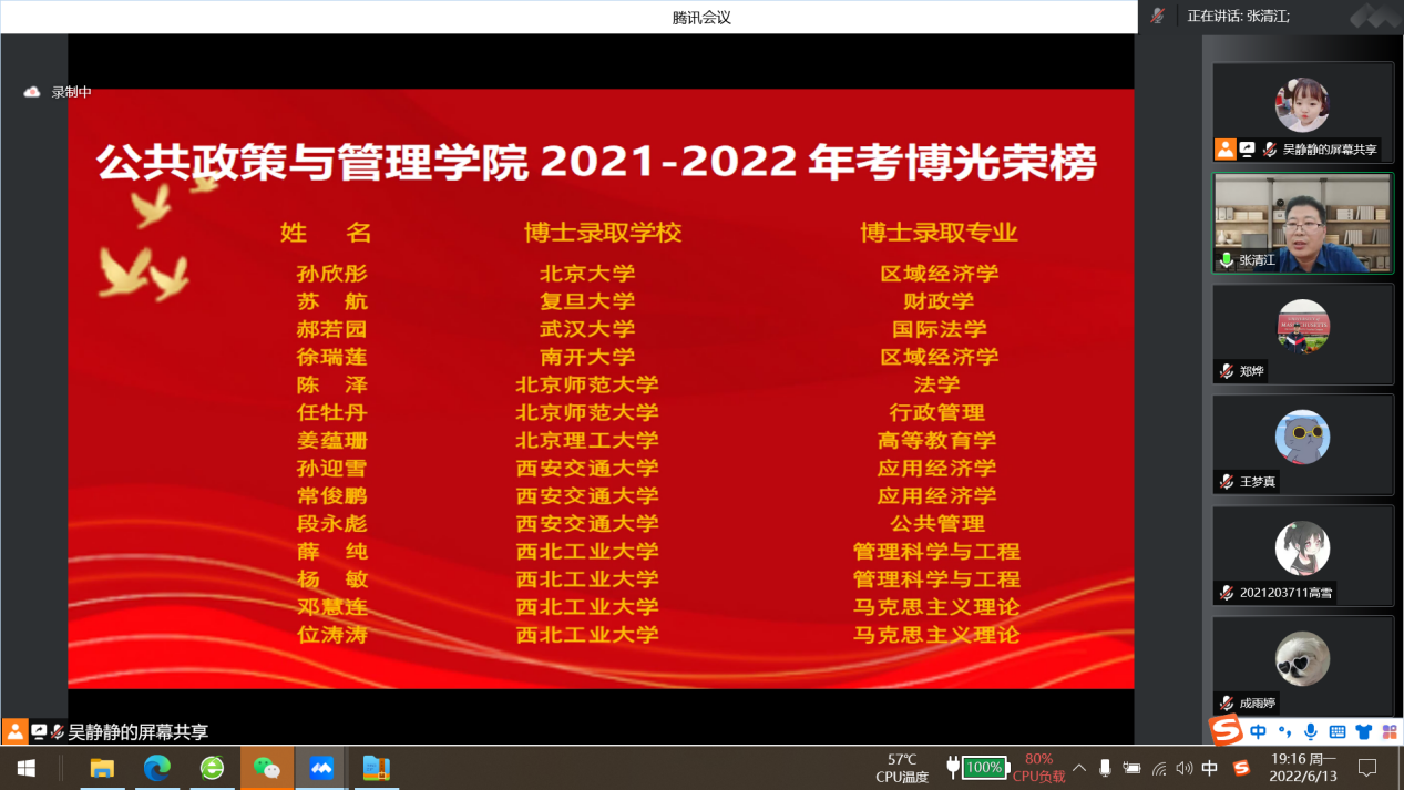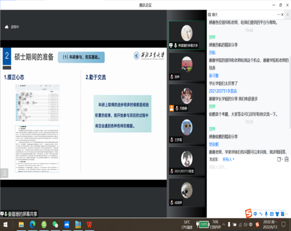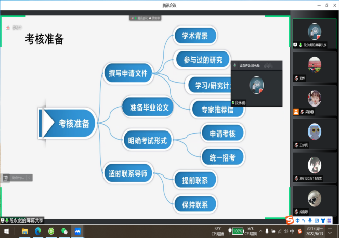 6月13日晚7点,yl7703永利集团研究生会线上举办了“拼‘博’有道,筑梦翱翔”考博经验分享会,yl7703永利集团党委书记张清江、院长刘晨光、学院副院长原嫄、党委副书记谢丹、研究生辅导员郑烨及20级、21级研究生参与了本次分享会。