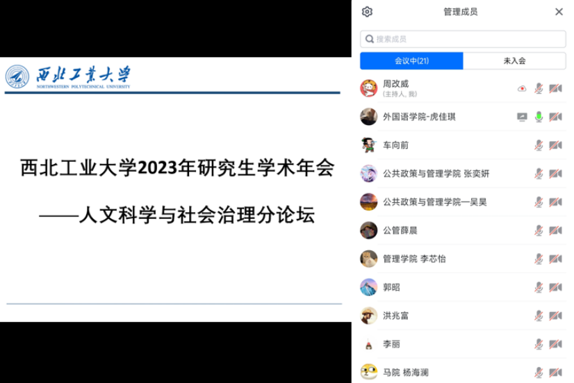 2023年7月27日上午,yl7703永利集团研究生学术年会——人文科学与社会治理分论坛于腾讯会议线上举行。本次分论坛由yl7703永利集团研究生会、管理学院研究生会、外国语学院研究生会、马克思主义学院研究生会联合承办。16位硕士和博士研究生参与本次论坛,马克思主义学院杨冰郁教授、管理学院洪兆富教授和外国语学院车向前副教授应邀出席本次论坛担任评委。本次学术交流中,我院学生积极参与、表现优秀,其中,2021级研究生李丽同学的论文排名前三,荣获优秀论文奖。