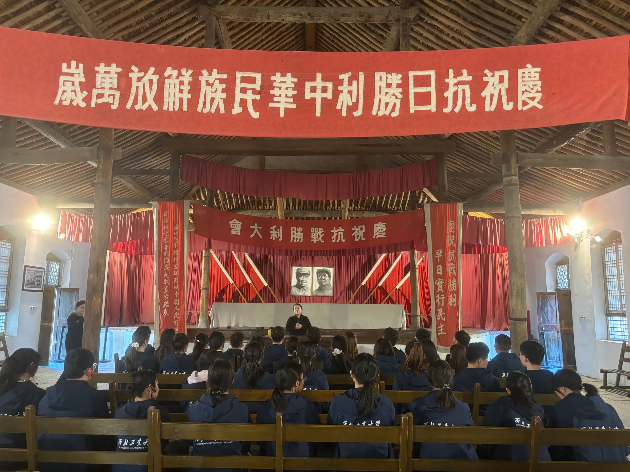 铸剑班成员走进枣园革命旧址,实地探访毛泽东、周恩来等老一辈革命家曾经工作生活的窑洞院落,感受他们在艰苦环境中坚守理想信念的崇高精神。曹峰副主任为大家带来《延安窑洞里有马列主义》的专题教学,深刻阐释了延安时期党的理论创新与实践探索。随后,全体成员整齐列队,前往张思德纪念广场集体诵读《为人民服务》,在铿锵誓言与经典篇章中筑牢“为人民服务”的初心使命。铸剑班成员前往鲁艺旧址开展实践教学,通过“向经典致敬”体验环节,共同重温《黄河大合唱》的豪迈激情,感受文艺工作在革命动员与精神凝聚中的重要作用。