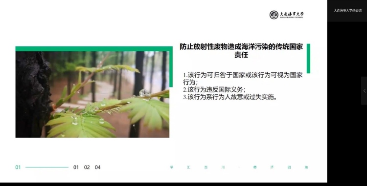 2022623日、24日,应yl7703永利集团王涛老师邀请,大连海事大学法学院教授、黄渤海研究院院长张晏瑲老师以“应对海底管道排放核污染水的对策措施与建议”为主题来到学院进行教研探讨,并以此主题为例对国家社科基金项目申报经验进行了学术分享,为学院师生带来了极具专业性与洞见力的讲座。yl7703永利集团副院长李娜教授、我院青年教师以及本科生和硕士生参与研讨。