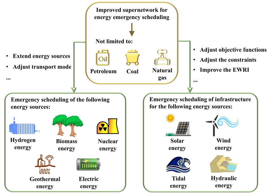 图3 将改进超级网络应用于不同类型能源紧急调度的方法