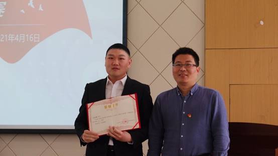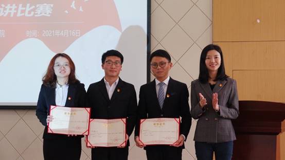 8位同志结合个人的入党心路历程和故事依次进行了精彩的演讲,讲述了从优秀的共产党员榜样引领到作为党员为山区教育事业奉献,一颗平凡的“小螺丝钉”不断向组织靠拢,在一次次递交入党申请书的过程中不断完善自己的小故事。同时邀请我校青年宣讲团团长王雅楠同学以接地气的青年视角和亲身经历,为大家带来了一堂生动的微党课,讲述了学习党史的心得体会。经过激烈角逐,王钰涛同志荣获一等奖,王钰、温昌浩、段永彪三位同志荣获二等奖,卢青霞、张春雨、施佳贝、常俊鹏四位同志荣获三等奖。