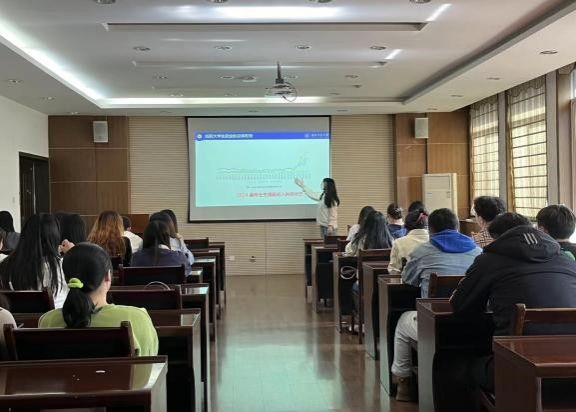 张春雨同学从当前本、硕、博就业的总体形势和我校近年来就业情况两方面向同学们进行介绍,以同龄人角度分享了如何先人一步获取到更多就业消息的方式,结合在就业准备的各阶段需要做什么、如何做为同学们出谋划策,帮助同学们理清思路,尽早准备,在未来就业时可以临危不乱,脱颖而出。