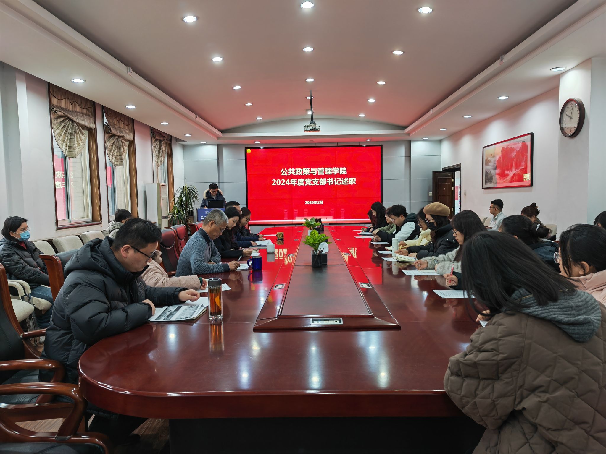 述职结束后,管兴华对学院各党支部过去一年的工作给予充分肯定,并从发挥党建引领作用、推动党建与业务深融互促及建强基层党组织等方面,对强化支部建设、发挥战斗堡垒作用提出建设性意见建议。他对2025年度推动党建工作高质量发展提出了四点工作要求:一是提高政治站位,强化思想引领。将学习领悟党的二十大及二十届三中全会精神,贯彻落实学校第十四次党代会精神及各项指示精神作为支部学习的重要内容,统一思想、凝心聚力推动学院高质量发展。二是强化党建引领,推动深融互促。将党旗插在科研第一线,以党建引领师生科研和学习的导向和宗旨,推动建设综合素质高、战斗力强的党支部。三是提升工作标准,筑牢战斗堡垒。对标“高质量、高水平、高速度”的工作要求,保持“动作不变形、方向不拐弯、工作不松劲”的工作态度,狠抓支部标准化建设,动态优化支部组织架构,持续推进“样板支部”建设。四是要守牢底线,抓好稳定安全、意识形态、党风廉政等工作。