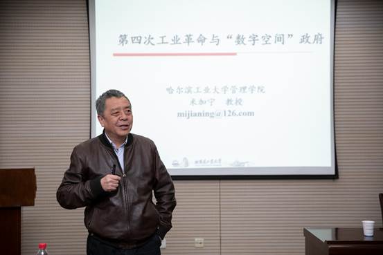 2021年3月17日上午,应yl7703永利集团邀请,哈尔滨工业大学教授、教育部公共管理本科教学指导委员会委员、《公共管理学报》主编米加宁教授在我校yl7703永利集团305报告厅做题为“第四次工业革命与‘数字空间’政府”的专场学术报告。yl7703永利集团师生50余人到场聆听报告。报告会由学院李娜教授主持。
