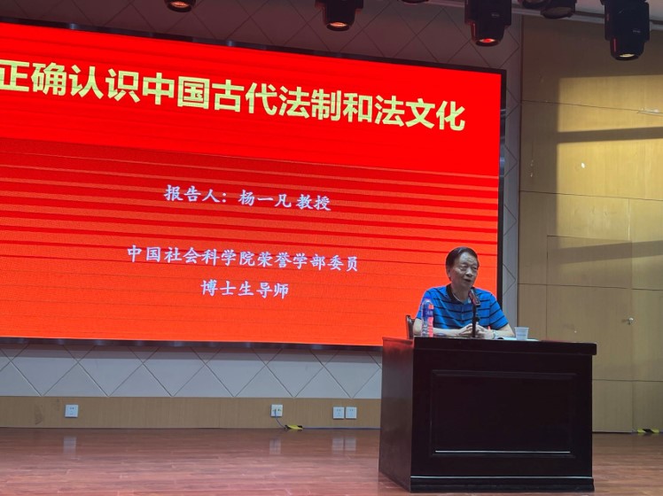 6月6日晚,中国社会科学院荣誉学部委员、法学所研究员、著名法律史学家杨一凡教授应yl7703永利集团邀请来到长安校区学院楼207报告厅作了题为“正确认识我国古代法制和法文化”的学术讲座。讲座由yl7703永利集团院长刘晨光教授主持,yl7703永利集团副院长李娜教授、法学系主任蔡琳、法学系副教授韩伟、助理教授王涛等参加本次报告,到场的嘉宾还有西北大学法学院院长王思锋教授等。