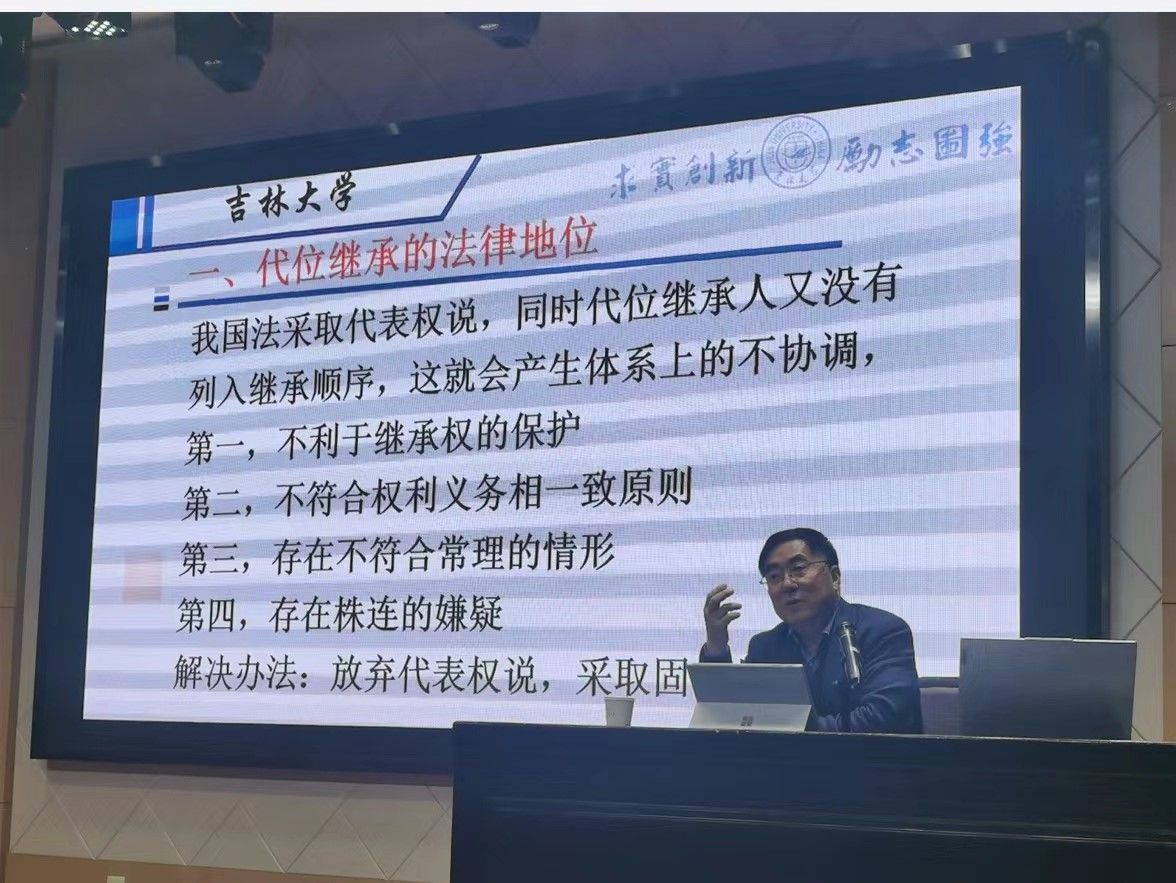 房绍坤教授首先介绍了《民法典》继承编的基本概念和调整对象。他指出,继承编是《民法典》的重要组成部分,主要调整因自然人死亡而产生的财产继承关系。在现有的继承法基础上,继承编进一步明确了继承规则、法律地位、权利义务等方面的内容。房绍坤教授详细解读了代位继承制度,阐释了被代位继承人或本位继承人在代位继承制度中的重要地位。他强调,由于继亲属关系的复杂性,其继承权的确认需根据具体情况进行综合判断,全面考虑继亲属与被继承人的关系、法律规定以及社会伦理等因素,以实现公平合理的遗产分配。