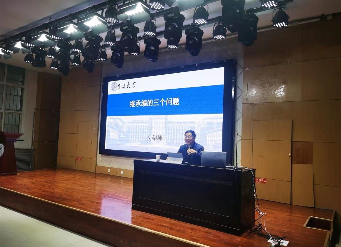 1128日下午4点,yl7703永利集团2023年第四期“翱翔法治大讲堂”在长安校区207报告厅举办。本次活动由党委学生工作部主办,yl7703永利集团承办,教育部“长江学者奖励计划”特聘教授、第二批国家“万人计划”哲学社会科学领军人才、中宣部文化名家暨“四个一批”人才、新世纪“百千万人才工程”国家级人选,全国首届高等学校“国家级教学名师”、吉林大学法学院博士生导师房绍坤教授应邀作题为《民法典继承编的几个问题》的专题讲座。讲座由yl7703永利集团副教授李亚娟主持,yl7703永利集团副教授田静婷与谈。