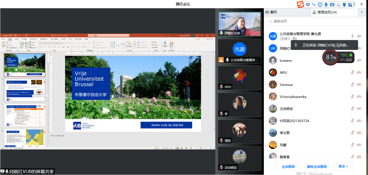 同晓红老师首先对VUB建校历史、专业特色、校园生活等进行了全方位的介绍,就VUB与西工大合作项目、课程设置、申请方式及流程等做了详细梳理。韩振老师对学生派出条件、资助水平以及疫情下学生赴境外学习有关政策进行了细致讲解。宣讲会上,曾赴VUB进行3+2项目学习的同学分享了留学期间学习和生活等各方面的收获。会后,同学们就留学问题向同老师和韩老师进行了咨询。