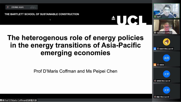 D'Maris Coffman现为伦敦大学学院可持续建筑学院院长、教授、博导,担任知名国际学术期刊编委。D'Maris Coffman教授近年来在气候变化和能源资源政策领域的研究成果,发表在国际顶级学术刊物上。本次研讨活动分享的主题是“The heterogeneous role of energy policies in the energy transition of Asia-Pacific emerging economies”。