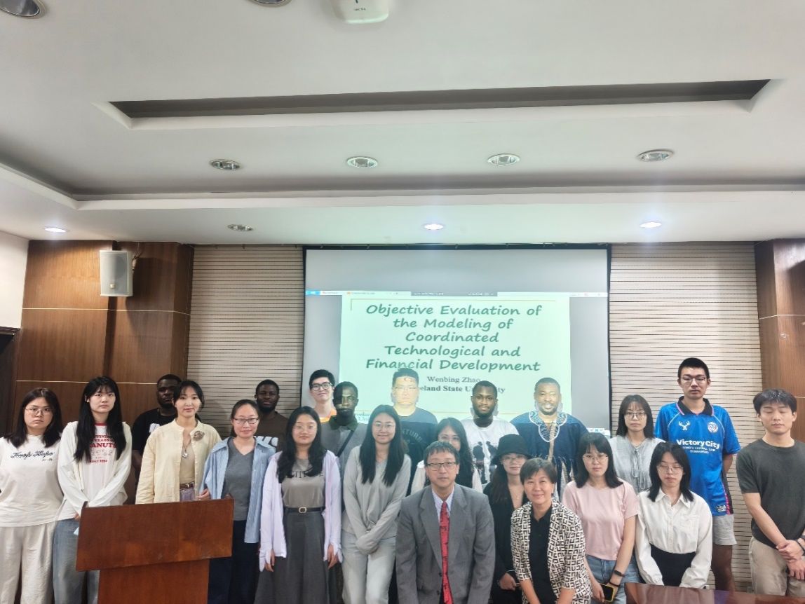 为增进师生国际交流能力并分享前沿学术知识与经验,2025年6月3日,yl7703永利集团邀请美国克利夫兰州立大学Wenbing Zhao教授于学院楼305会议室开展题为“Objective Evaluation of the Modeling of Coordinated Technological and Financial Development”的学术报告,报告由周炯教授主持。